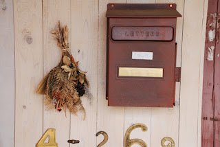 玄関のポスト。下の住所の金具は友達がアメリカ(西海岸のどっか)から買ってきてくれたお土産。手紙おまちしております。
