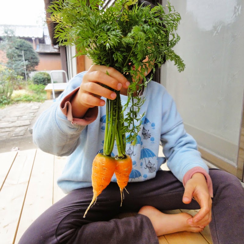 春に種をまいた人参が今更、なんとかここまでに育つ。